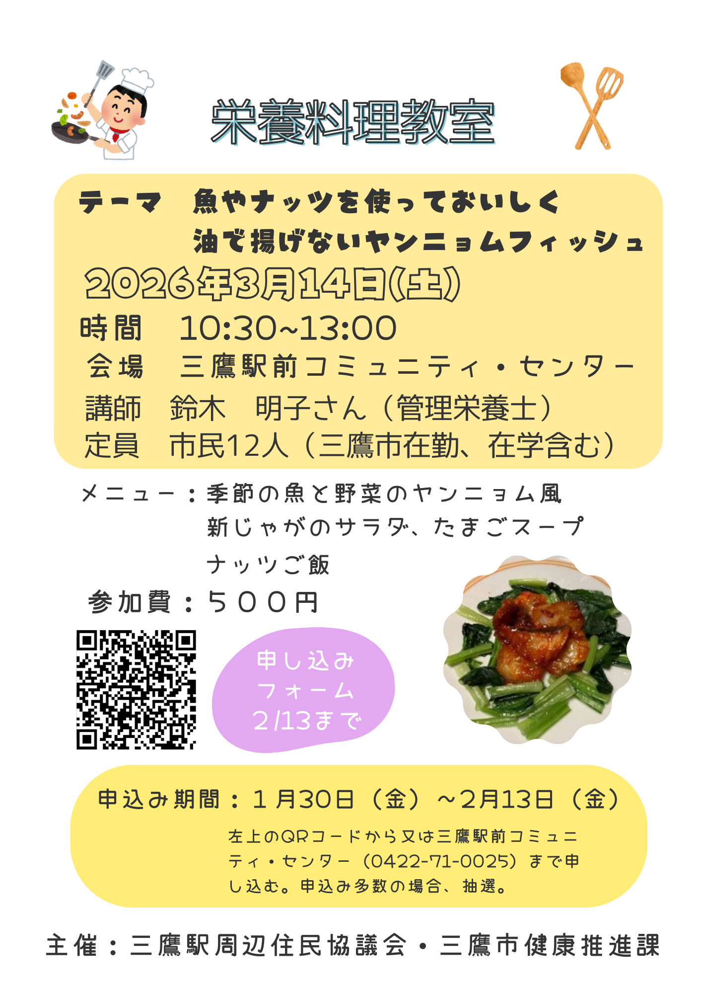 500円 (当選者は事前に三鷹駅前コミュニティ・センター窓口に、3月6日(金曜日)までに支払う。) |