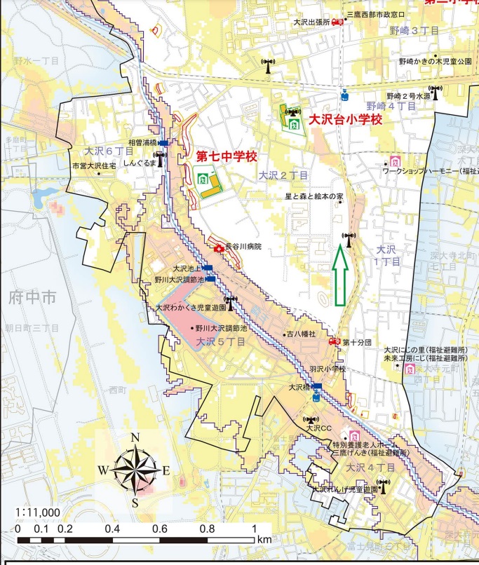 東京都の浸水予想区域図の更新に伴い、風水害時の大沢地区の避難所の取扱いが変更されました。